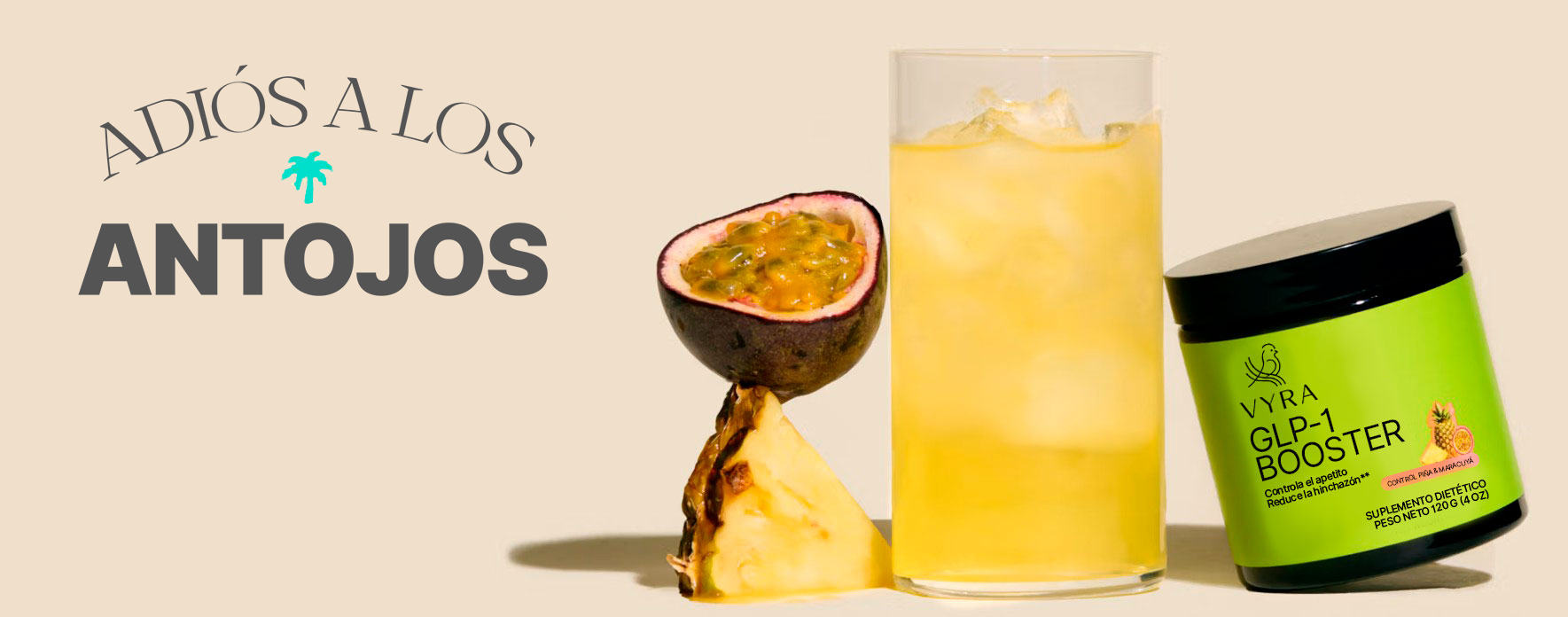 El refuerzo GLP-1 viral en sabor Piña & Fruta de la Pasión. Duplica tus niveles de GLP-1 y escapa de los antojos en 30 minutos.